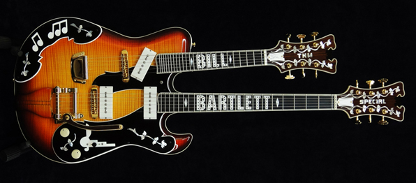 Specifications: Body: 16. inch - Hollow Scale: Main neck - Choice of scale Frets: Medium gauge (like Fender) Tuners: Grover Imperial 3x3 - Grover mini locking -inline 6 Pickups: Hand made to resemble and sound like the Bridges: Modified Hallmark or other at additional cost Tremolo: Modified Hallmark - look very similar to the Case: Plush lined hard shell case. Options: Violin Tailpiece - add $250.00 A word of thanks to two special people that got me started making these special guitars again.. Deke Dickerson that resurrected my second doubleneck, originally made for Ernie Odum in 1959. He restored it and toured world wide, exposing this fascinating, over-the-top guitar to thousands of people that may have never seen one before, or, reminding the fans of Joe Maphis and Larry Collins of a time past. Because of Deke, I started making a new doubleneck in my spare time (SN003). I think it was about 1999. I worked on it for years. . . never quite finishing it (until 2004). Enter Buddy Dughi. Buddy Dughi, leader of the Hot Rod Trio, lead guitar of Suzy Q and her Be-Bop Boys (which features his beautiful wife Suzy). Buddy is an intense collector and historian of Joe Maphis and all things doubleneck. I'm not sure how many doublenecks Buddy has at present (He recently divested a mint condition Mosrite JM65) but supplies most of the instruments for the doubleneck extravaganza that Deke Dickerson puts on at his Guitar Geek Festivals the last few years. Buddy, being a friend of Deke Dickerson had seen the recent restoration of the TNM Custom doubleneck. I guess it was something that he would like to have because he started calling me to get one built for him. He was persistant and persuasive, after a few calls I said I would make him one. I thank him now for his persistence. Making these replicas of Semie Moseley's masterpiece is an honor. I am proud to carry on the tradition. Please Call or E me for more info. Terry McArthur 615 288 4489