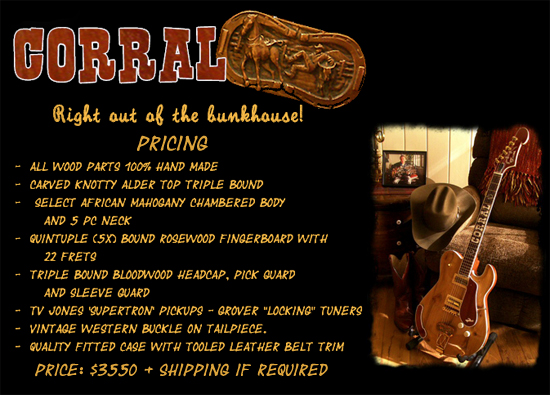 THE MAPHIS Price - $7500* - includes plush lined case. Many long hours goes into the creation of these one of a kind, made-to-order guitars. I use only the best quality materials available from the curly maple, ebony and rosewood to the hardware. The Maphis will be constructed to resemble the original doubleneck guitar made for Joe Maphis by Semie Moseley in the mid 1950's. There can be some specifications requested by the customer but the final shape, configuration and color will be the decision of TNM. No two are ever exactly alike. The goal of my efforts is to continue the line of these very special guitars. Semie Moseley made only a few of this type. So far only 7 have been accounted for- Joe Maphis', Larry Collins' Doyle Hart's (see news page) Bob Regan, Doyle Hart, Doug Brewer, Walt Rogers, and Elaine Frizzell was fortunate to get one in 1984.. (If there are others I would be very pleased to here about it.) Much later Semie made Joe a second doubleneck when the original went to the Country Music Hall of Fame and Larry Collins recieved a second guitar in 1988. Both of these were far less adorned than the originals. At present there are 2 types of peg head design options: The six on a side version, like the very first model presented to Joe Maphis in 1954, (like my prototype) or the "M" head design that appeared about 1 year later and became the hallmark of the Mosrite look. The tremolo would be similar to the Mosrite Celebrity. Supplied by Bob Shade of Hallmark Guitars. If an original Celebrity tailpiece is preferred this would be acquired at extra cost. The bridges are a modified Rickenbacker type with rosewood saddles as original. Now based on the Hallmark bridge. *A word about the pickups. The original pickups used on the first iteration by Semie were supplied by Carvin. These are getting very hard to come by. . . If you would prefer to have original Carvin pickups on your guitar we would have to start looking to buy vintage Carvins and harvest the pickups. No telling what the cost would be. Otherwise, reproduction pickups, wound to original specs by Bob Shade of Hallmark Guitars would be used.